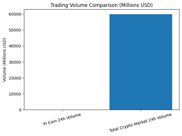 For context, the total crypto market regularly exceeds $60 billion in daily volume, making Pi’s activity extremely thin for a token of its size.